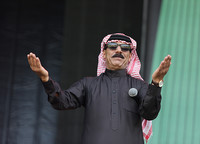 Омар Сулейман. Омар Сулейман - сирийский певец в куфии и очках не спеша прохаживался из стороны в сторону по сцене, подбадривая зрителей протяжными возгласами "ииииееееааа", пока единственный аккомпанирующий музыкант старательно выжимал из двух синтезаторов восточные мотивы и ухающую прямую бочку.